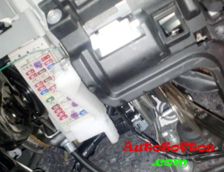 Он находится под самой панелью приборов с левой стороны. Для доступа надо убрать защитную крышку.