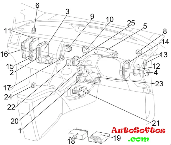 Здесь мы подробно рассмотрим расположение электронных блоков управления, описание предохранителей и реле Тойота Приус 30 с фотографиями и схемами блоков. Отметим предохранитель прикуривателя.