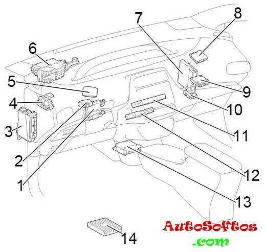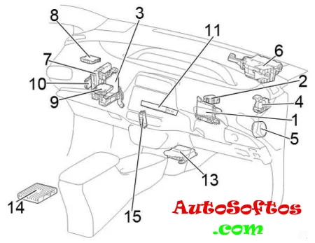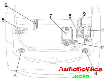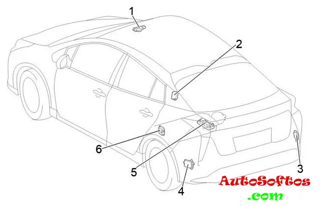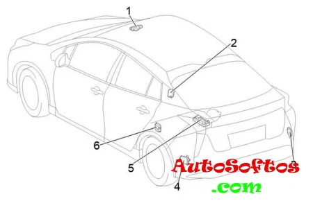 | 2. | 5A ECU-B NO.1 — Система открывания двери багажника, круиз-контроль, интеллектуальная система входа и запуска, гибридная система, иммобилайзер, блокировка селектора коробки передач, система запуска, блокировка руля, система предупреждения пешеходов (генератор шума), система беспроводного управления |