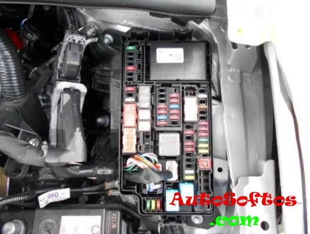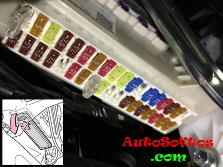 Он находится под панелью приборов с левой стороны, за защитной крышкой.