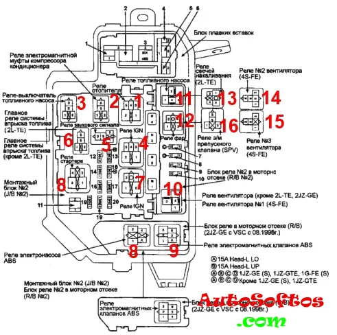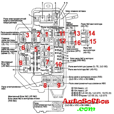 - блок реле в моторном отсеке (R/B) (2JZ-GE с VSC)