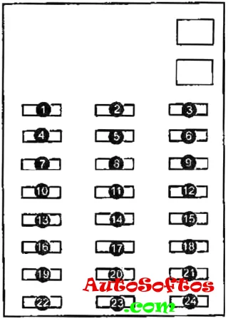 | 21. | 10A ECU-ACC — Система блокировки переключения передач, часы, система подушек безопасности (SRS), электропривод боковых зеркал |
