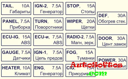 | TURN (указатели поворота и аварийная сигнализация) | 10А |
