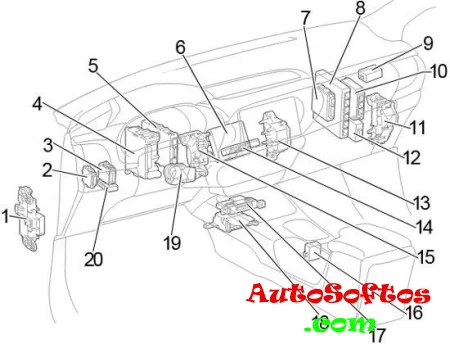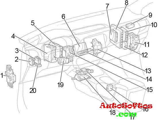 | 19. | 5A IG2 NO.3 — Система зарядки, система распределенного впрыска топлива/ система последовательного распределенного впрыска топлива, иммобилайзер, блок управления электро оборудованием кузова, телематическая система |