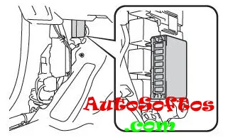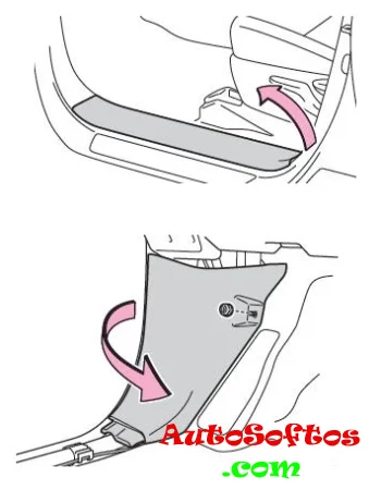 Он расположен на левой стойке под защитной салона (левый руль). Для доступа надо снять накладку порога. Пример доступу на схеме.