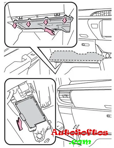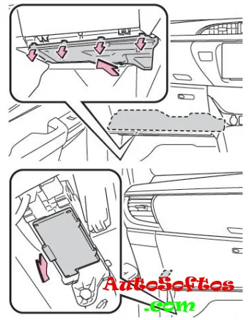 Устанавливается за бардачком, на торце приборной панели.