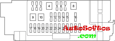 | 25 | 10A STRG LOCK/ AM2 N1 — Система распределенного впрыска топлива/система последовательного распределенного впрыска топлива, интеллектуальная система входа и запуска, иммобилайзер, система запуска, блокировка руля, система беспроводного управления |