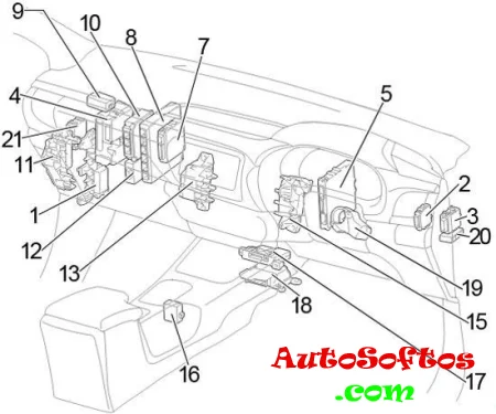 | 14. | 10A OBD — Диагностический разъем |