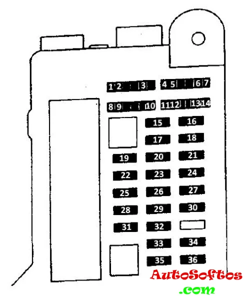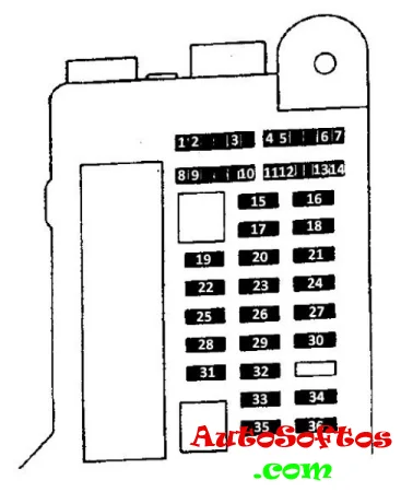 | 23. | 7,5A ECU-ACC — Система блокировки селектора АКПП и замка зажигания, часы, электропривод боковых зеркал |