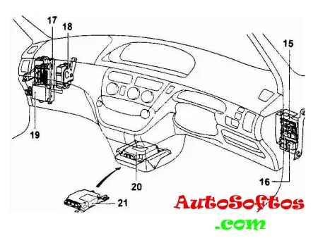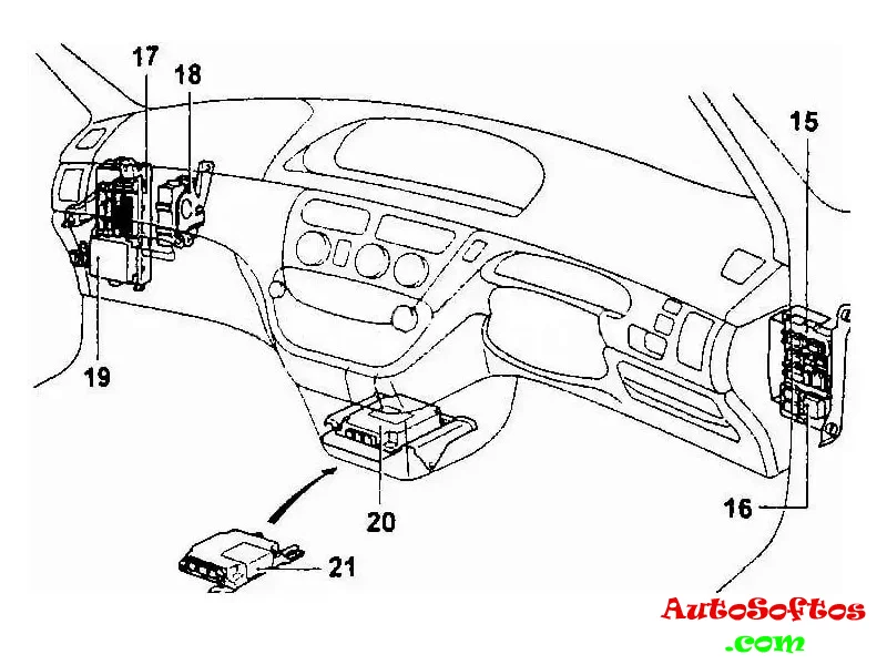- 17 — монтажный блок предохранителей со стороны пассажира