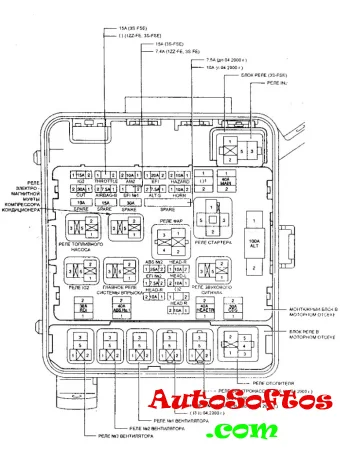 Здесь мы покажем места расположения блоков управления, подробное описание предохранителей и реле Тойота Виста Ардео sv50 со схемами блоков и местами их расположения.