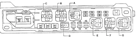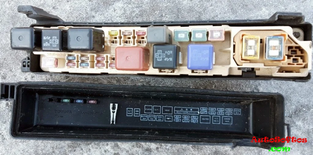 Здесь мы покажем описание предохранителей и реле Тойота Виста sv40 со схемами блоков и местами их расположения. Отметим предохранитель прикуривателя.