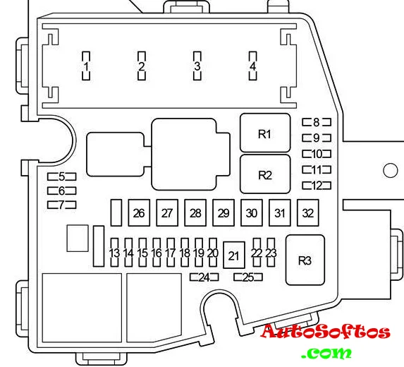 | 22. | 10A ECU-IG — Система дневных ходовых огней, анти блокировочная тормозная система, система электроусилителя руля, электрические стеклоподъемники, система блокировки дверей, система защиты от кражи, электрический вентилятор охлаждения |
