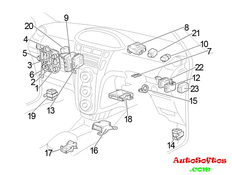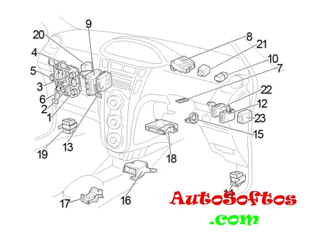 Здесь вы можете найти описание мест расположения электронных блоков управления, назначение предохранителей и реле Тойота Ярис / Витц / Белта 2 со схемами блоков и фото примерами их исполнения. Отметим предохранитель прикуривателя.