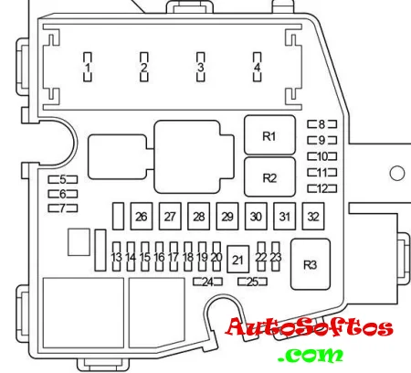 | 12. | 30A ABS2/VSC2 — Анти блокировочная тормозная система, система контроля устойчивости автомобиля |