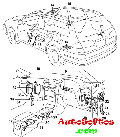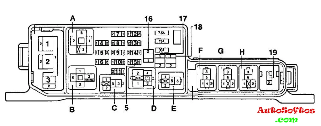 Здесь вы можете найти информацию с расположением электронных блоков управления и описание предохранителей и реле Тойота Калдина Т21х со схемами блоков и фото примерами исполнения. Отдельно отметим предохранитель прикуривателя.
