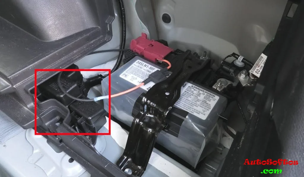Находится в моделях, у которых аккумулятор расположен в правой части багажного отсека за защитной крышкой, преимущественно у гибридных моделей.