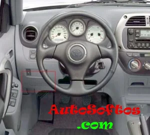 Находится под панелью приборов с левой стороны. Для доступа надо убрать защитную крышку панели.