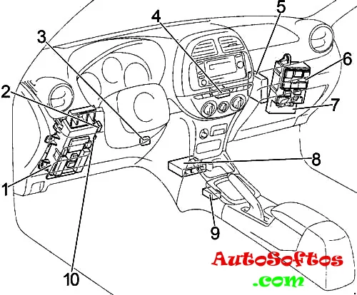 Здесь вы найдёте места расположения основных электронных блоков управления, подробное описание предохранителей и реле Тойота Рав 4 (2 поколения) со схемами блоков и фото примерами исполнения. Отдельно отметим предохранитель отвечающий за прикуриватель.