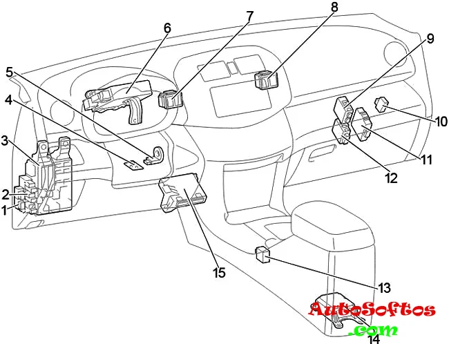 На схеме обозначен под цифрой 3. Находится под панелью приборов.