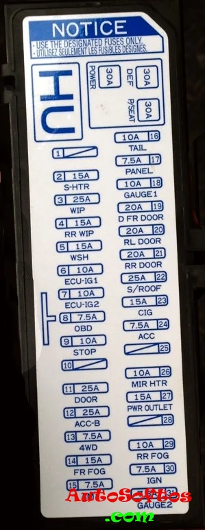 | 30. | 7,5A IGN — Подушки безопасности, система многоточечного впрыска топлива/система последовательного многоточечного впрыска топлива, стоп-сигналы/габаритные огни, система запуска |