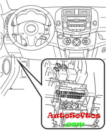 Расположен рядом с блоком предохранителей.