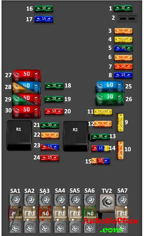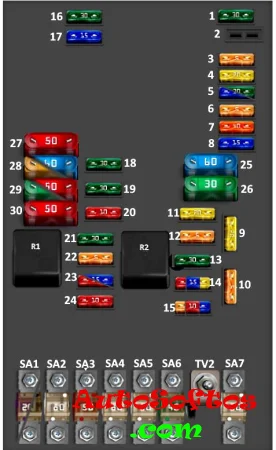 | SA5. | 80A Блок предохранителей салона: №20 — №24 и №43 — №53 |
