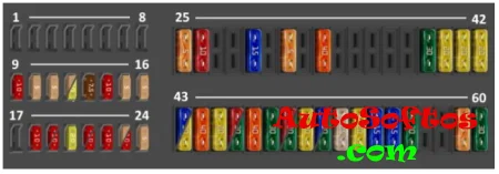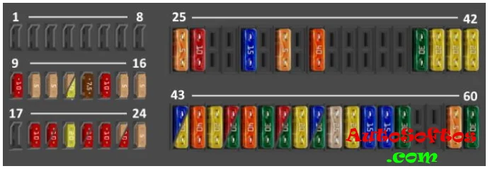 | F25. | 60A Блок управления ABS, гидравлический насос ABS |