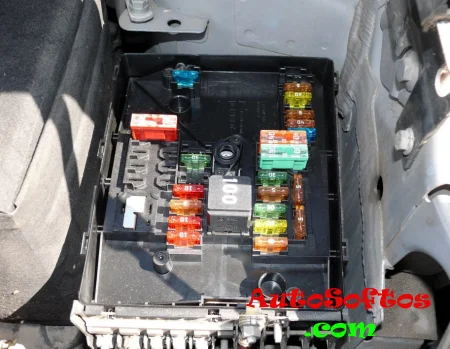 В моторном отсеке блок с предохранителями и реле расположен рядом с аккумуляторной батареей и закрыт защитной крышкой.