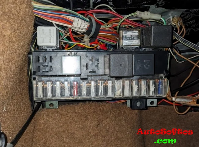 В салоне автомобиля основной блок с предохранителями и реле находится под панелью приборов со стороны водителя.