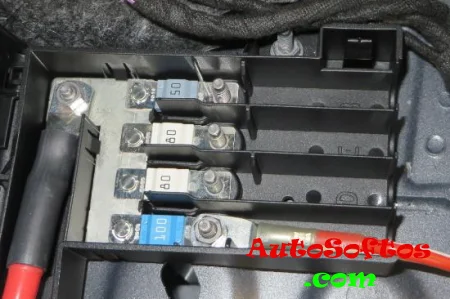 Рядом с аккумуляторной батарей может устанавливаться блок предохранителей высокой мощности.
