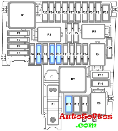 | F9. | 15A Блок управления бортовой сетью (гудок) |