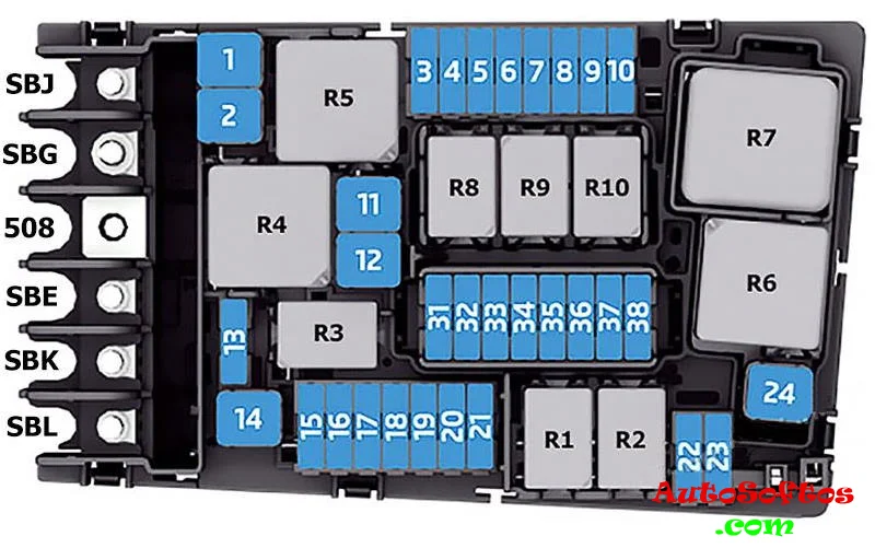 | SB16. | 20A Реле питания компонентов двигателя |