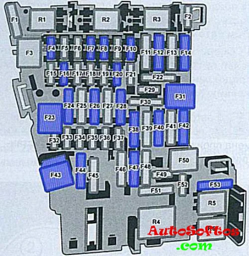 | F43. | 30А Блок управления бортовой сети |