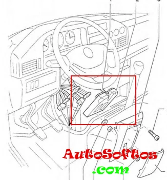 Он находится под рулевой рейкой за защитной крышкой.