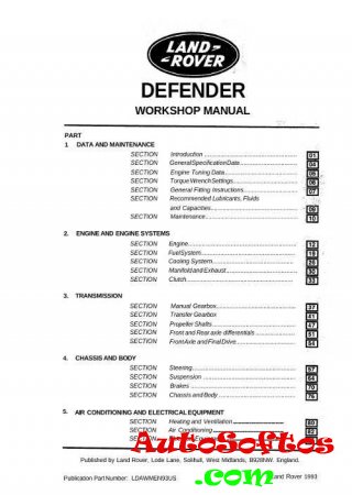 Руководство на английском языке по техническому обслуживанию и ремонту автомобиля Land Rover Defender 90 1993 года выпуска.
