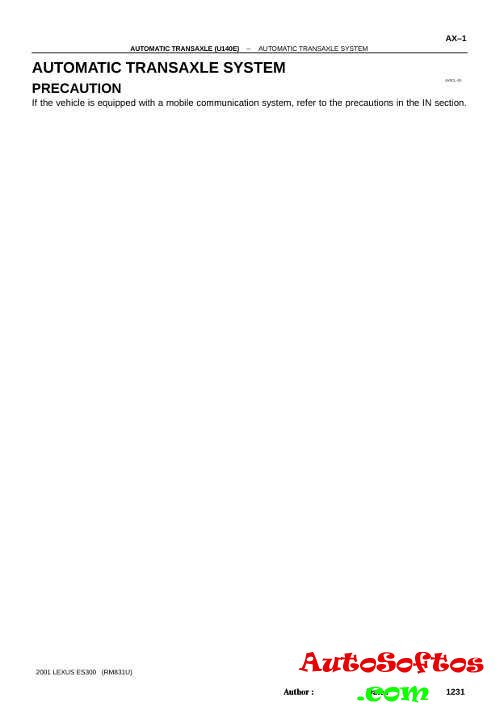 Руководство на английском языке по техническому обслуживанию и ремонту автомобиля Lexus ES300 2001 года выпуска.