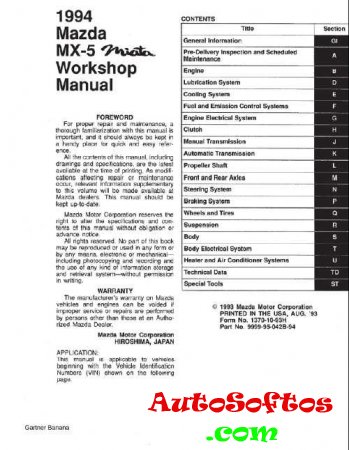 Workshop Manual Mazda MX-5 Miata 1994 г.