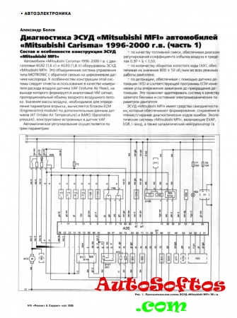 Диагностика ЭСУД "Mitsubishi MFI" автомобилей "Mitsubishi Carisma" 96-00 г.в. Скачать