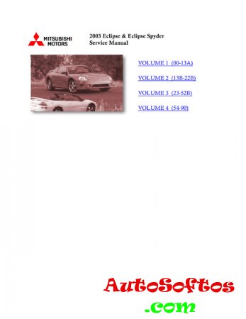 Руководство на английском языке по техническому обслуживанию и ремонту автомобилей Mitsubishi Eclipse/Eclipse Spider 2003 года выпуска. Год издания: 2002 Формат: PDF