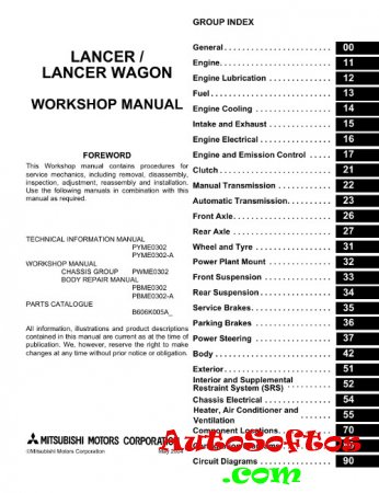 Руководство на английском языке по техническому обслуживанию и ремонту автомобилей Mitsubishi Lancer/Lancer Wagon 2005 года выпуска. Год издания: 2004 Формат: PDF