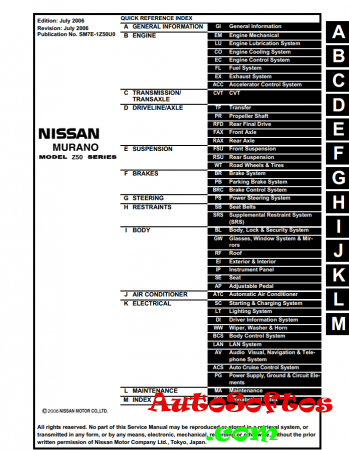 Руководство по ремонту и эксплуатации Nissan Murano 2006 Скачать