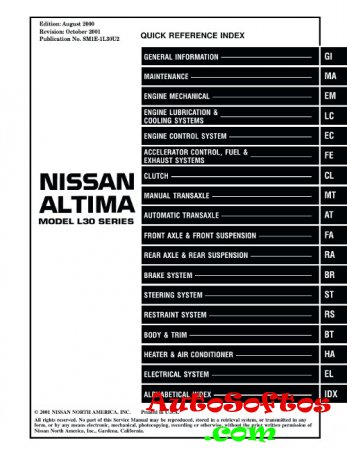 Сборник руководств на английском языке по техническому обслуживанию и ремонту автомобиля Nissan Altima серии L30 1997-2001 годов выпуска. Год издания: 1996-2001 Формат: PDF