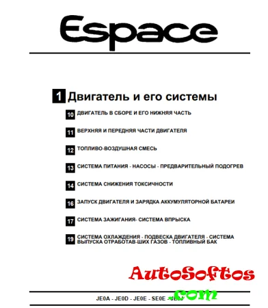 Содержит информацию о двигателях автомобилей Рено, включая их характеристики, типы и объем. Описываются различные компоненты двигателей, такие как система питания, система охлаждения, система выпуска отработавших газов. Подробнее