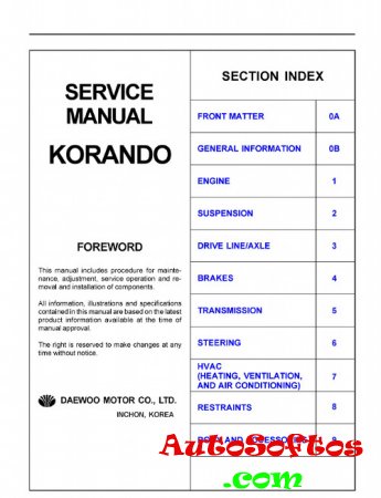 Service Manual SsangYong Korando 1996-2006 г.