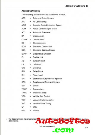 Сборник руководств на английском языке по техническому обслуживанию и ремонту автомобиля Toyota Avalon 2001 года выпуска. Формат: PDF