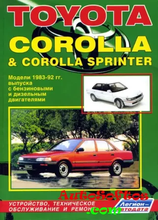 Toyota Corolla/Corolla Sprinter (Тойота Королла/Королла Спринтер). Руководство по ремонту. Модели с 1983 по 1992 год выпуска, оборудованы бензиновыми и дизельными двигателями. Типы двигателей: 2E/4A-F/5A-F/4A-FE/5A-FE/4A-GE/1C Объем двигателя: 1.3/1.5/1.6/1.8D л.