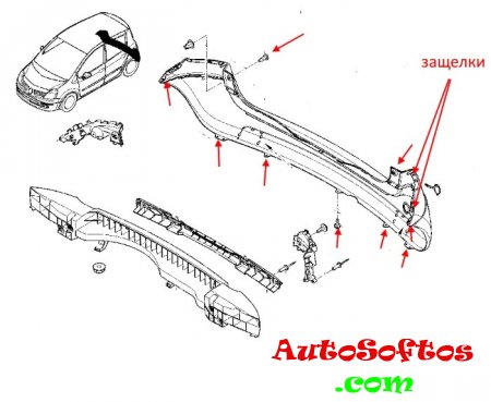 -освобождаем защелки в крыльях (тянем за углы на себя) и под задними фонарями.