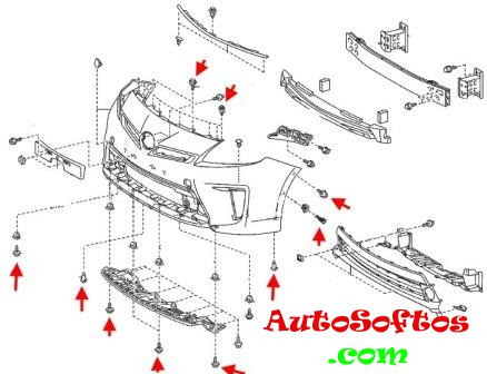 -под накладкой выкручиваем винты и вытаскиваем клипсы (закручены и вставлены сверху вниз), которые крепят верхнюю часть бампера .