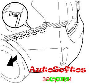 -с помощником освобождаем углы из защелок в крыльях и снимаем бампер с направляющих на себя.